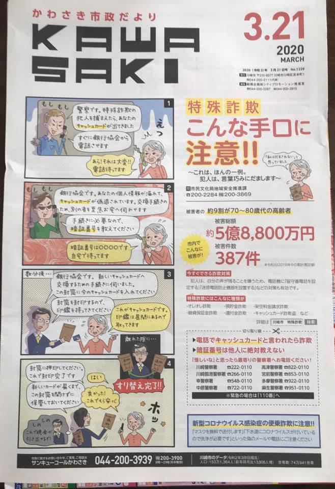 しかも、特殊詐欺も確かに重要な課題だと思いますが、今のタイミングで出すなら、話題は新型コロナウィルスに関する情報の方がタイムリーだと思うのですが。