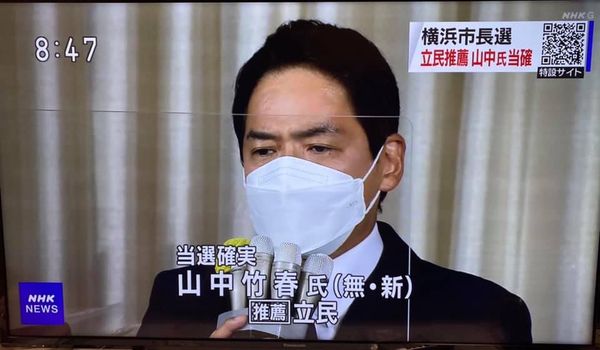 山中竹春さん、横浜市の新しいリーダーになることが確実となりました。はるばる応援に行った甲斐がありました。