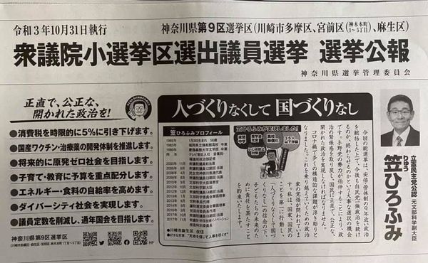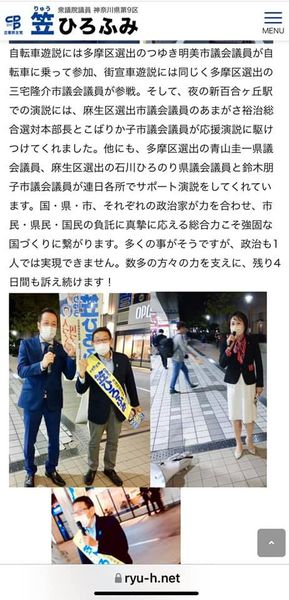 ようやく届いた選挙広報に笠ひろふみ候補のホームページ等のQRコードがありました。ホームページの下の方にブログがあったので見たところ、私たちの活動も記載がありました。もっと早く知っていれば、もっと早くみなさんにもお勧めできたのにと、残念で仕方ありません。選挙広報が未達の方、笠ネットで検索してみてください。