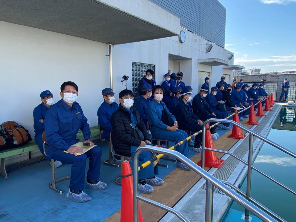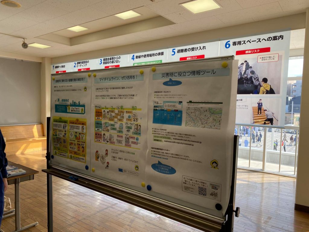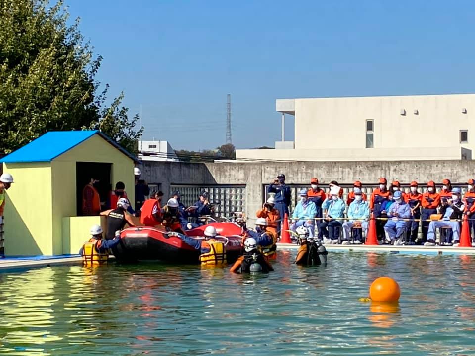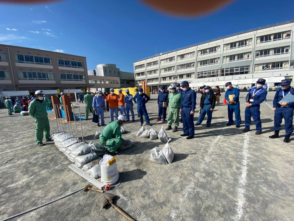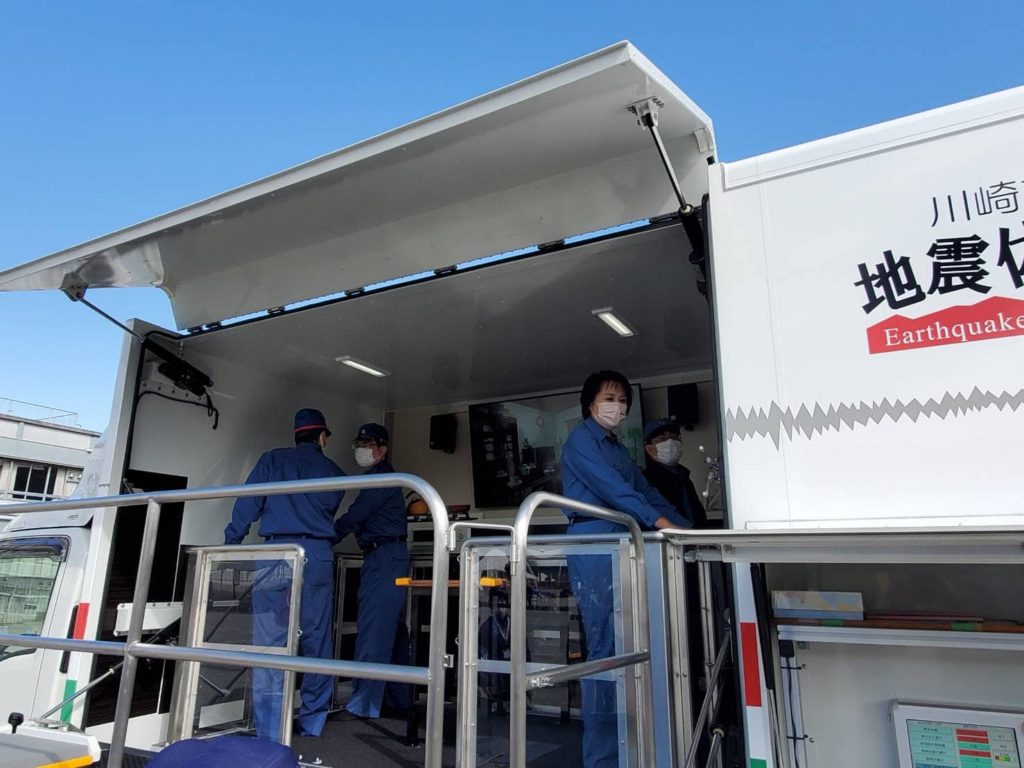 最初は、北部市場に他府県からの支援物資を受け入れ、各避難所に発送する手配の状況を確認しました。次に高津小学校に移動し、高津区の各町会から避難所運営会議の代表者など多くの方にご参加いただき行われた訓練を視察しました。高津区は、令和元年東日本台風の際、水害により死亡者を生じた経験があることから、今回初めて実践的な救助訓練が屋上プールで行われました。そのほか、川の流れを考慮して土嚢を積む訓練、コロナ禍で避難所を開設する際のゾーニングや工夫等、新たな訓練も多く見ることが出来ました。起震車は今年導入した最新で、土禁だったことにも驚きましたが、これまで以上にリアルな震度を体感することができる優れもので、東日本大震災や熊本地震など実際に起こった地震の震度も体感できるというので、東日本大震災のマグネチュード9の地震を40秒間体験しました。今回は、「来るぞ!」とわかっているから耐えられましたが、実際には突然どのくらいの長さで、どの規模で来るのかわからないので、やはり常日頃から家族での話し合いや、備蓄物資の確認、家具等の転倒への備えを行うことの重要さを学びました。