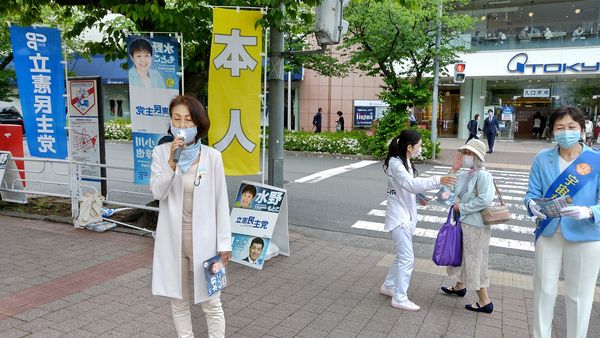 今日は、午前中は、たまプラーザ駅での街頭演説会から始まり、夕方からは、センター北駅での街頭演説会に参加しました。途中、昼の時間帯は、溝の口駅で街頭演説会を行なっていた寺崎雄介さんのお手伝いに参加。さすがに、足が棒になりました。