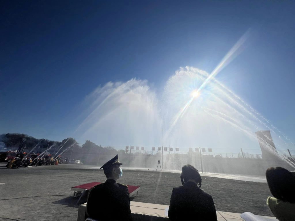 今日は、麻生地区消防出初式が3年ぶりに執り行われました。前日までの雨やら雪やらの予報を覆し、見事な晴天の元で最高の式となりました。カラーガード隊の息のあった見事な演技と楽団の素晴らしい演奏もあり、出初式を盛り上げてくださいました。