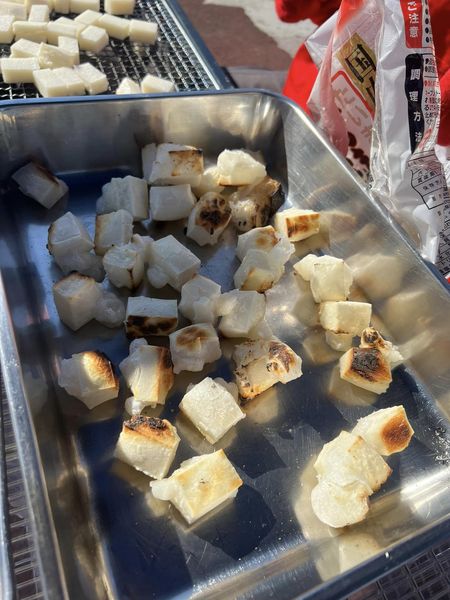 出初式に引き続き、区役所で行われていた七草粥の会にお邪魔してきました。七草粥の会は、毎年1月7日に行われますが今年は土曜日だったので、大変な人出となりました。用意された1000食とテイクアウト分200食は全部なくなったようです。優しい七草粥の味に、集まったみなさんは笑顔で溢れていました。お粥の中には、お餅が入っているのですが、人手が足りないということで、そのお餅を焼くお手伝いをさせていただきました。炭火で焼いた香ばしいお餅の香りに幸せな気持ちになりました。